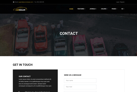 Default Joomla! content including Content components, Users components, Contact components and Search Components will be presented perfectly by JSN CarDealer.